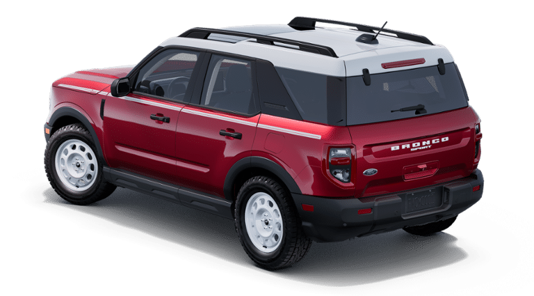 Ruby Red Metallic Tinted Clearcoat 2025 Ford Bronco Sport Heritage 4WD 8-Speed Automatic 1.5L EcoBoost Alloy wheels, Brake assist, Convenience Package, Equipment Group 250A, Front Driver/Passenger Seat Back Map Pockets, Heated 8-Way Power Driver's Seat, Heated door mirrors, LED Fog Lamps, Power Moonroof, Premium Wrapped Steering Wheel, Rear Parking Sensors, Rear window defroster, Remote keyless entry, Split folding rear seat, Steering wheel mounted audio controls, Universal Garage Door Opener (UGDO). Price includes: $2000 - Retail Customer Cash. Exp. 03/31/2026