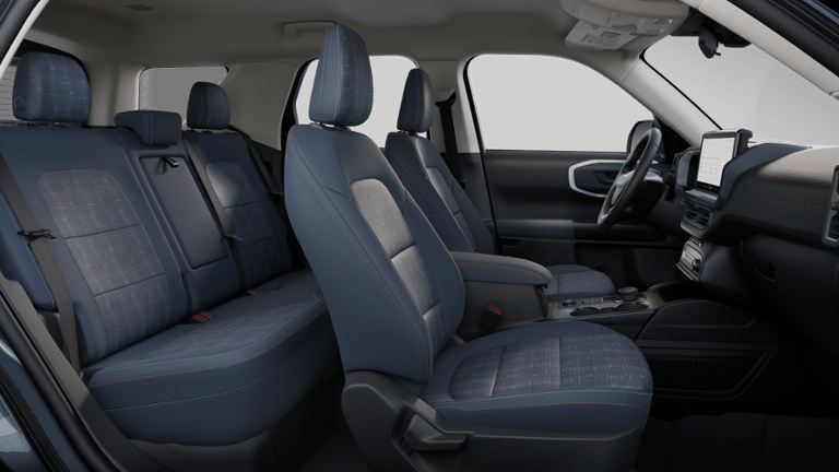 Inside, the Heritage edition continues the classic theme with two-tone plaid cloth seats, durable materials, and smart tech features like SYNC 4 with an 8-inch touchscreen, Apple CarPlay & Android Auto compatibility, and Ford Co-Pilot360 driver-assist technologies.
