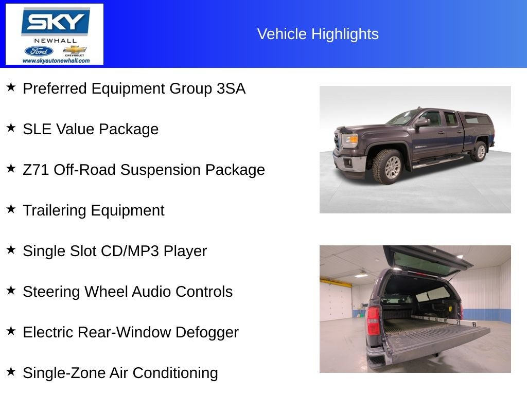 6-Speed Automatic Electronic with Overdrive, 4WD, Black Cloth, 10-Way Power Driver's Seat Adjuster, 110-Volt AC Power Outlet, 150 Amp Alternator, 4.2 Diagonal Color Display Driver Info Center, Black Alloy Wheels, Body Color Bodyside Moldings, Body Color Door Handles, Body Color Power-Adjustable Heated Outside Mirrors, Body-Color Mirror Caps, Brake assist, Chrome Grille Surround, Color-Keyed Carpeting w/Rubberized Vinyl Floor Mats, Deep-Tinted Glass, Driver & Front Passenger Illuminated Vanity Mirrors, Dual-Zone Automatic Climate Control, Electric Rear-Window Defogger, Electronic Autotrac Transfer Case, Exterior Parking Camera Rear, EZ Lift & Lower Tailgate, Front Frame-Mounted Black Recovery Hooks, Front Halogen Fog Lamps, Heated door mirrors, Heated Driver & Front Passenger Seats, Heavy-Duty Rear Locking Differential, Hill Descent Control, Leather Wrapped Steering Wheel w/Cruise Controls, LED Cargo Box Lighting, Manual Tilt Wheel Steering Column, OnStar 6 Months Directions & Connections Plan, OnStar w/4G LTE, Power Windows w/Driver Express Up & Down, Preferred Equipment Group 3SA, Rear 60/40 Folding Bench Seat (Folds Up), Rear Vision Camera w/Dynamic Guide Lines, Rear Wheelhouse Liners, Remote Keyless Entry, Remote Vehicle Starter System, Single Slot CD/MP3 Player, Single-Zone Air Conditioning, SLE Value Package, Split folding rear seat, Steering wheel audio controls, Steering Wheel Audio Controls, Trailering Equipment, Universal Home Remote, Z71 Off-Road Suspension Package.