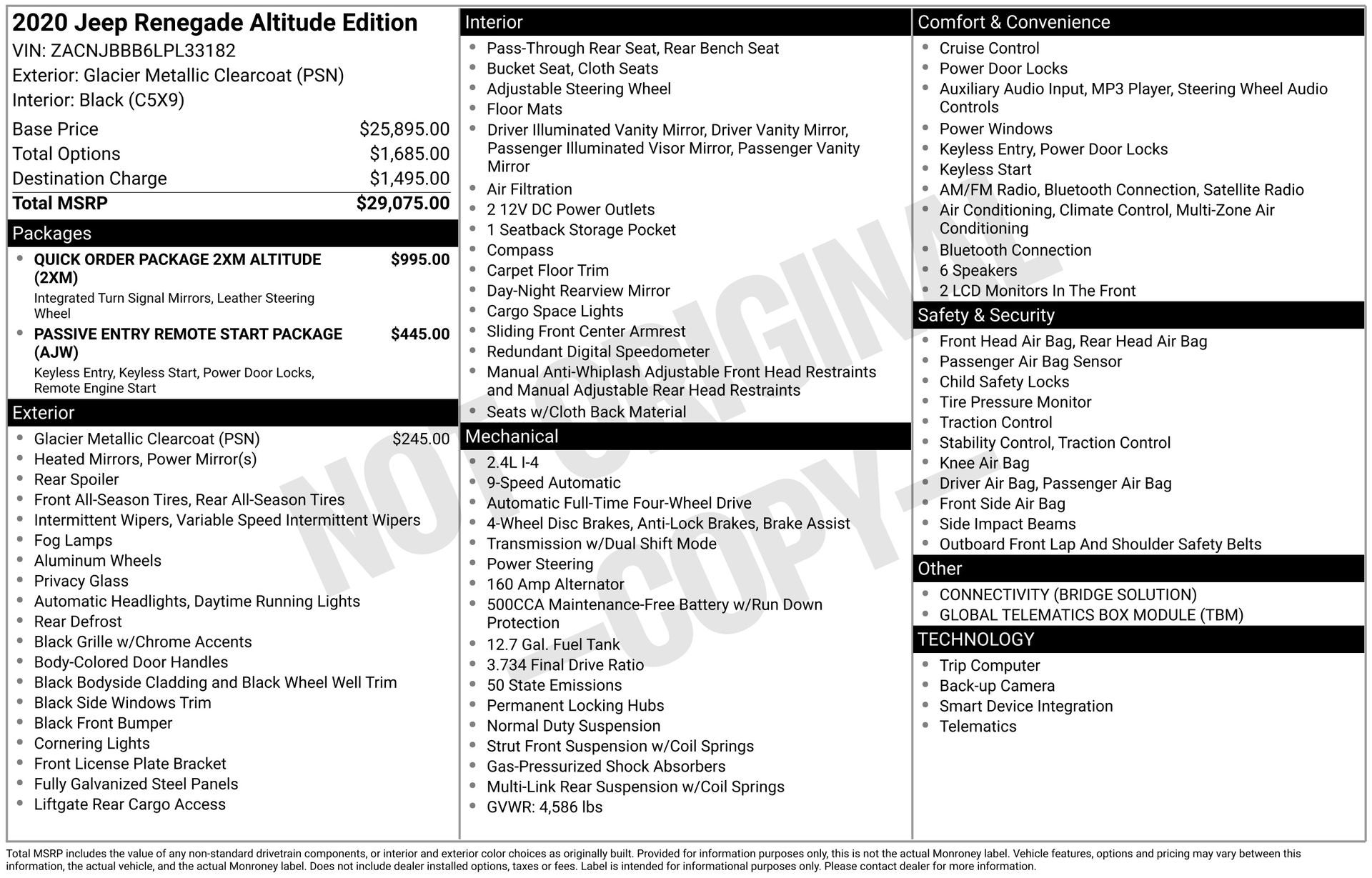 Glacier Metallic Clearcoat 2020 Jeep Renegade Altitude 4WD 9-Speed 948TE Automatic 2.4L I4