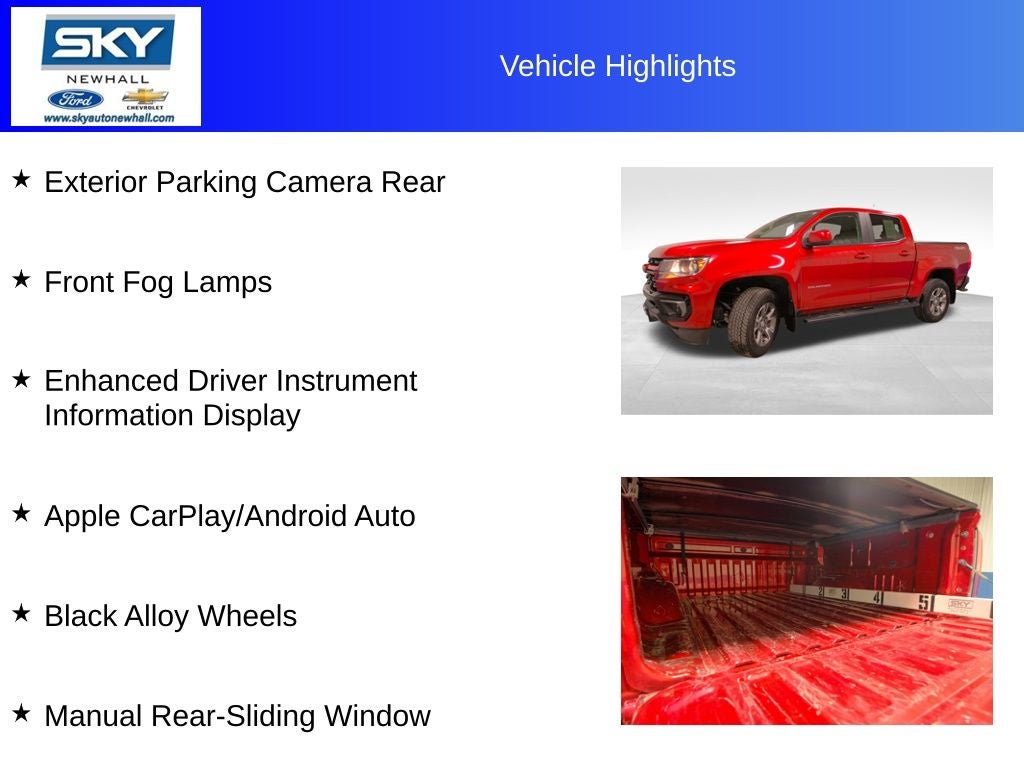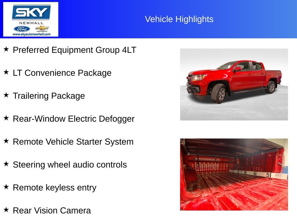 Experience the perfect blend of capability and comfort with the 2021 Chevrolet Colorado LT. Designed to handle both your workday and weekend adventures, this midsize pickup offers a smooth, confident ride without sacrificing ruggedness. Inside, you’ll find a thoughtfully crafted cabin with intuitive controls and plenty of space, making every journey enjoyable whether it’s a quick drive across town or a long road trip. With its striking design, versatile performance, and refined interior, the Colorado LT is ready to keep up with your lifestyle, no matter where the road—or off-road—takes you.
