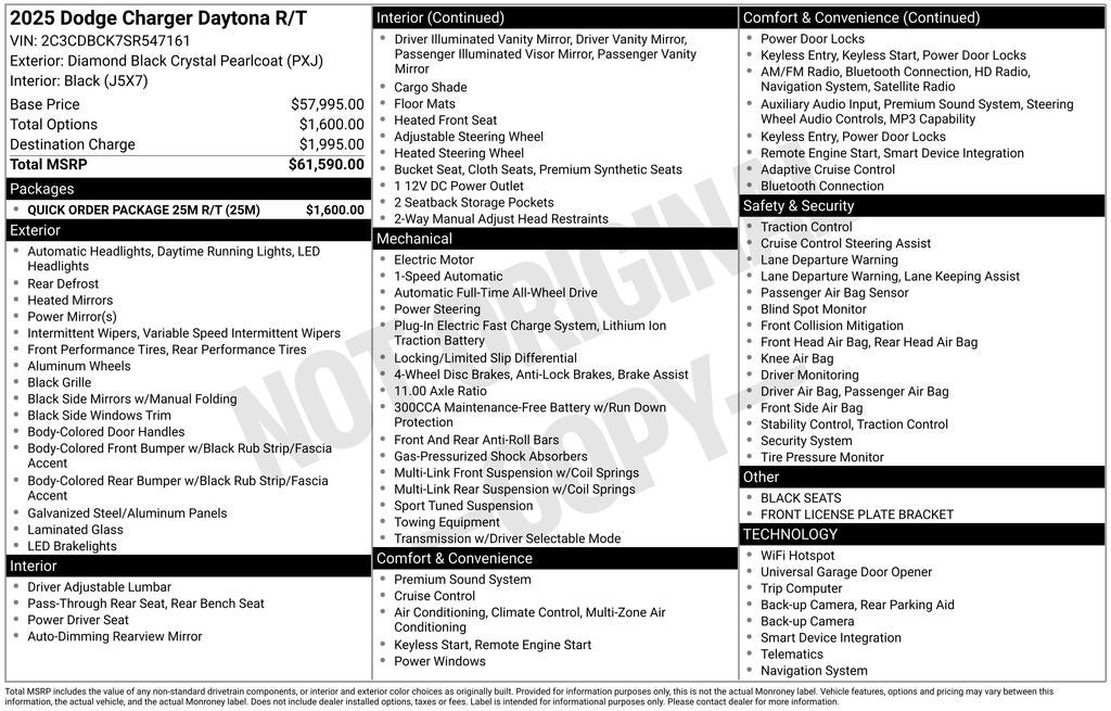 AWD, Black Artificial Leather, Apple CarPlay/Android Auto, Black Alloy Wheels, Brake assist, Heated door mirrors, Heated Exterior Mirrors, Heated Front Seats, Heated front seats, Heated steering wheel, Leather Shift Knob, Leatherette/Cloth Performance Seats, ParkView Rear Back-Up Camera, Quick Order Package 25M R/T, Rear window defroster, Remote keyless entry, Split folding rear seat, Steering wheel audio controls.