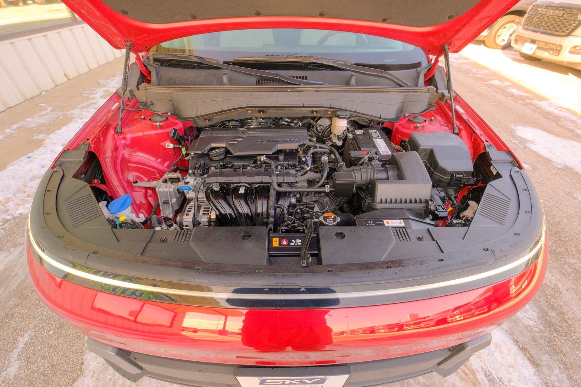 Alloy wheels, Apple CarPlay & Android Auto, Brake assist, Exterior Parking Camera Rear, Heated door mirrors, Leather steering wheel, Option Group 01, Rear window defroster, Remote keyless entry, Split folding rear seat, Spoiler, Steering wheel mounted audio controls. Ultimate Red Metallic 2025 Hyundai Kona SEL AWD CVT 2.0L I4 DOHC 16V