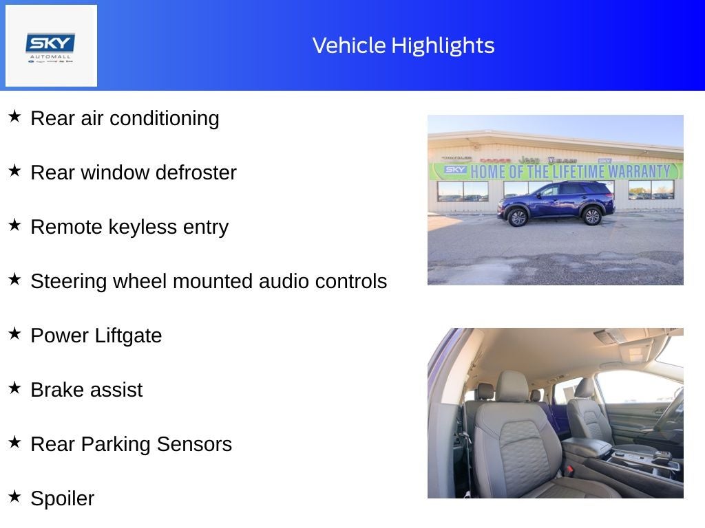 Introducing the 2025 Nissan Pathfinder SV—a versatile, family-ready SUV designed to make every drive feel easy, comfortable, and confident. With its bold, modern styling and spacious interior, the Pathfinder SV is built to handle everything from weekday carpools to weekend escapes.